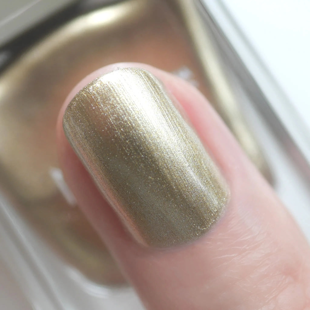 ステッチの糸やボタンをイメージした、ジュエリーのように輝くサテンゴールド