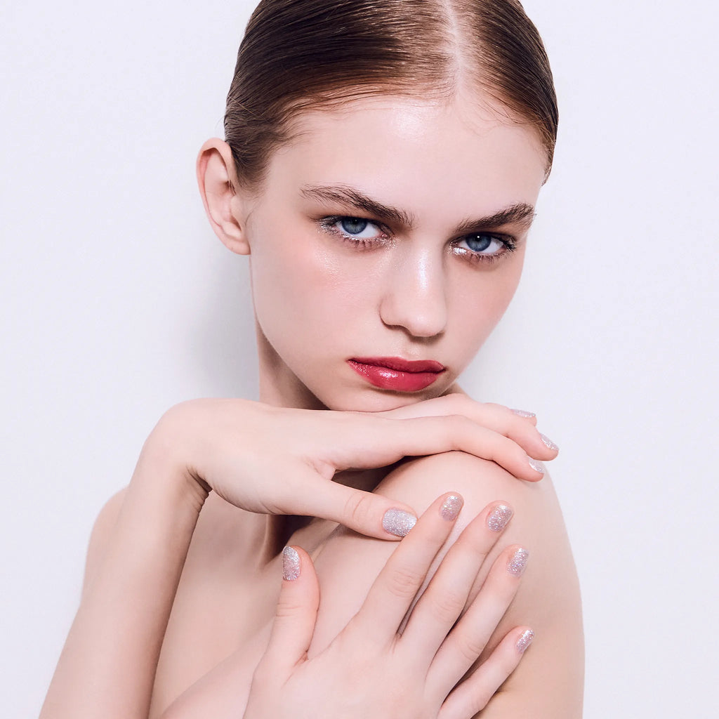 指を動かすたびに虹色の光を放ち氷を砕いたようなシャープな煌めきが魅力のドラマティックに彩るシルバーグリッター